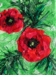 Beautiful, floral, unique, and contemporary artwork created using Victoria's individual style involving layering and manipulating coloured tissue papers.